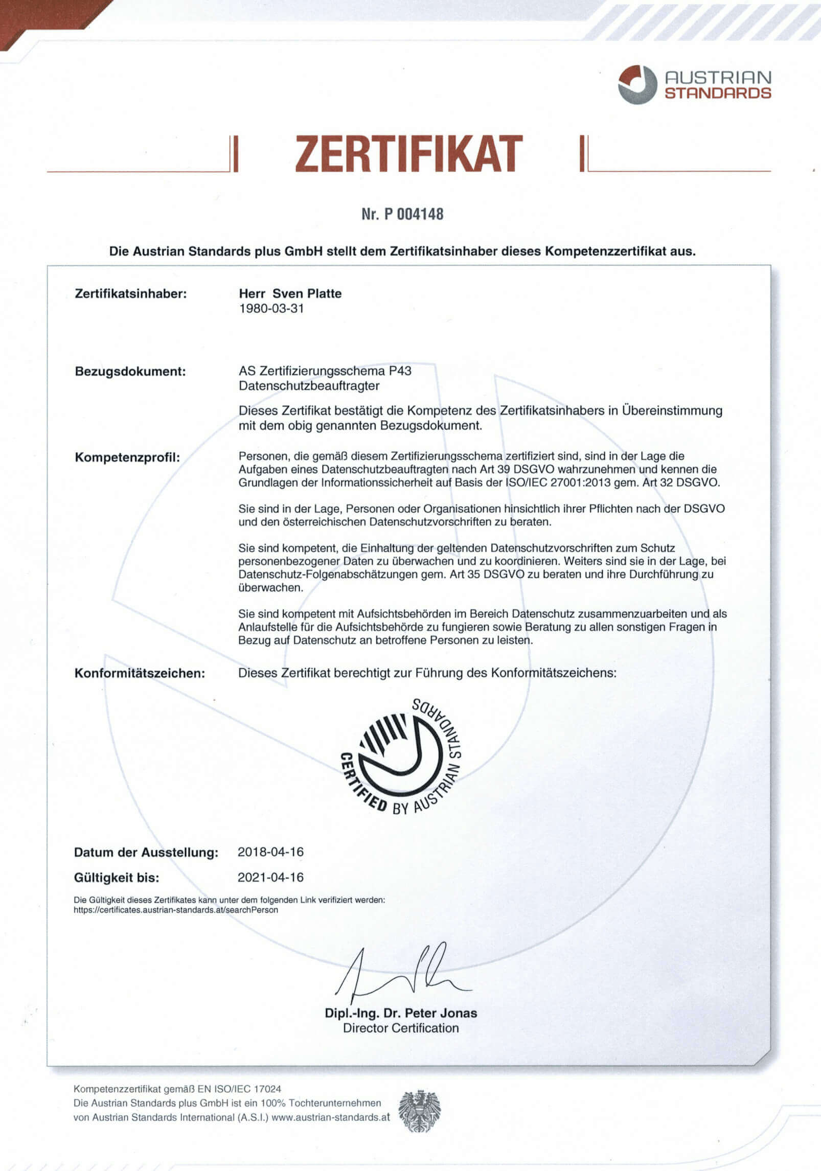 We work according to the highest data protection and security standards. To ensure that your company and your customers' data is protected in the best possible way, we have had our leading employees certified as data protection officers by Austrian Standards.